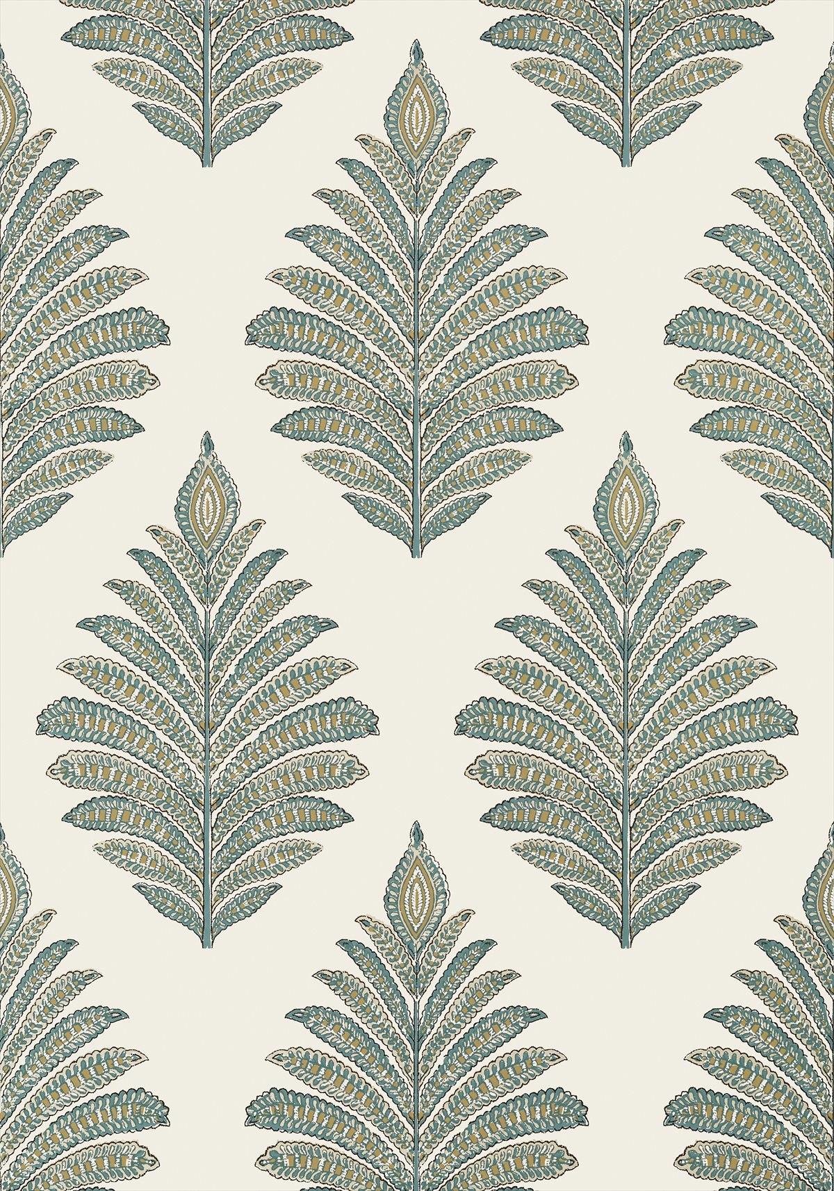 Palampore Leaf Wallpaper uit de Palampore-collectie van Anna French van . Palampore Leaf kan een uniform groenontwerp met uitgestrekte schaal zijn.
