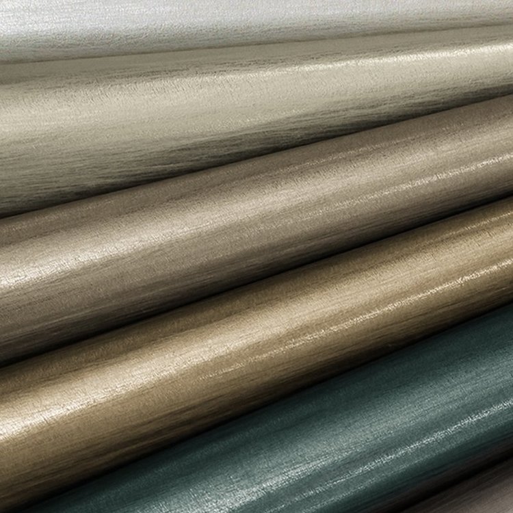 Metallized Plain behang. Gemetalliseerde vlakte wordt voorgesteld in zes verschillende kleuren en is afgestemd op Towada- en Himalaya-thema's op metalen drager.