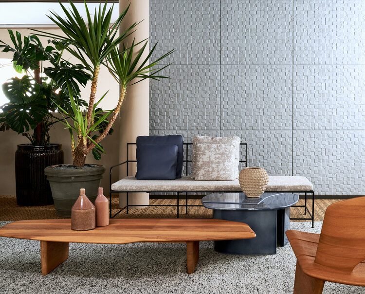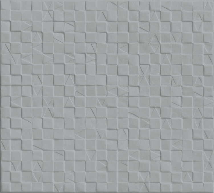 Adobe experimenteert met diverse reliëfs, zowel in hoogte als in diepte. De onregelmatige vierkantjes en driehoeken zorgen voor een speels, geometrisch en fascinerend effect. Het ontwerp doet denken aan ongebakken kleistenen (adobe) die in de zon drogen.