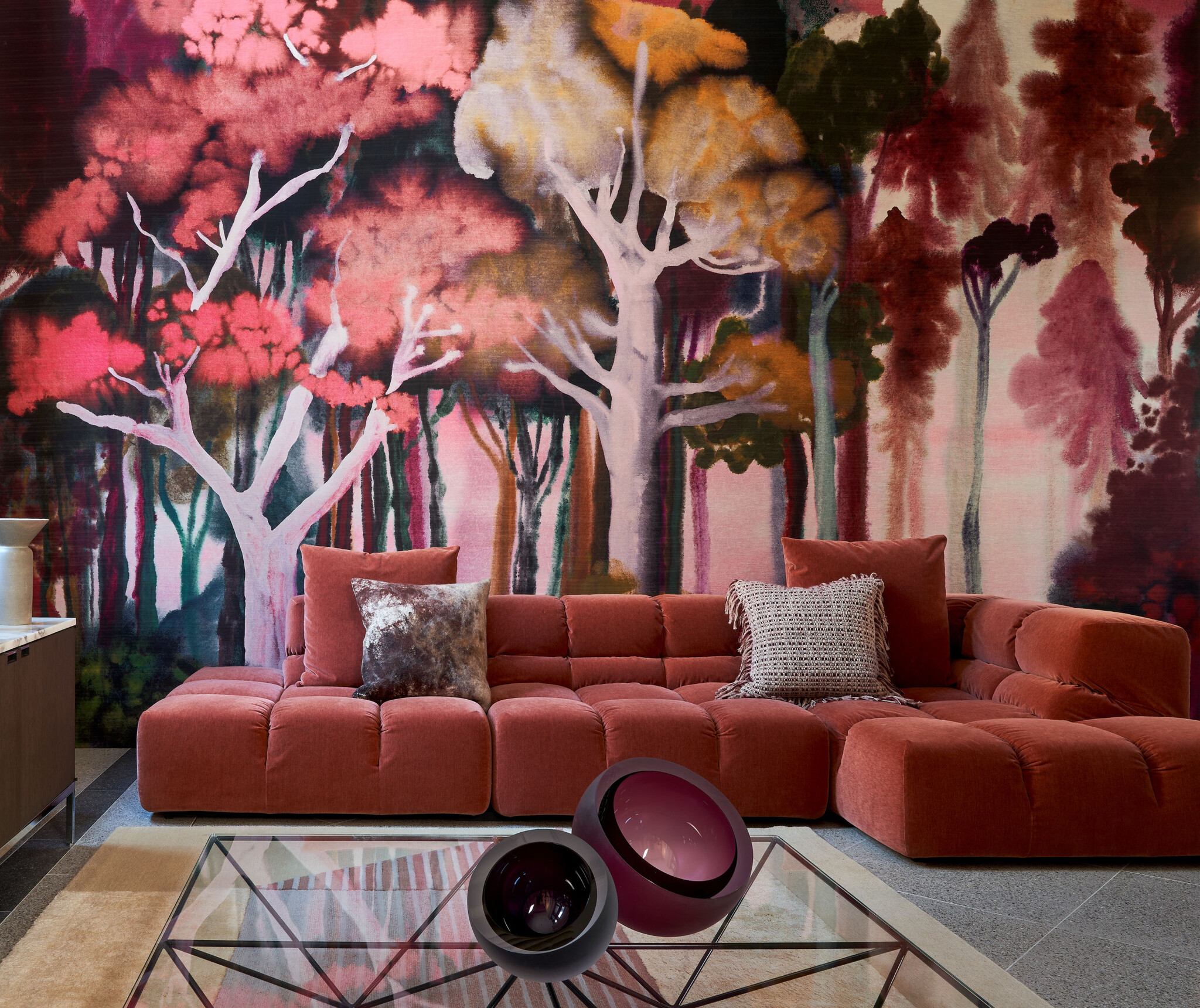 Banyan is een behang dat geïnspireerd op de gelijknamige boom, die groeit langs de beroemde Zijderoute. Deze muurbekleding van ARTE uit de Alaya collectie toont de hoge majestueuze bomen, op een behang met een toepasselijke zijdelook. Een dromerig behang dat perfect is voor een luxe, kleurrijk en sfeervol interieur.