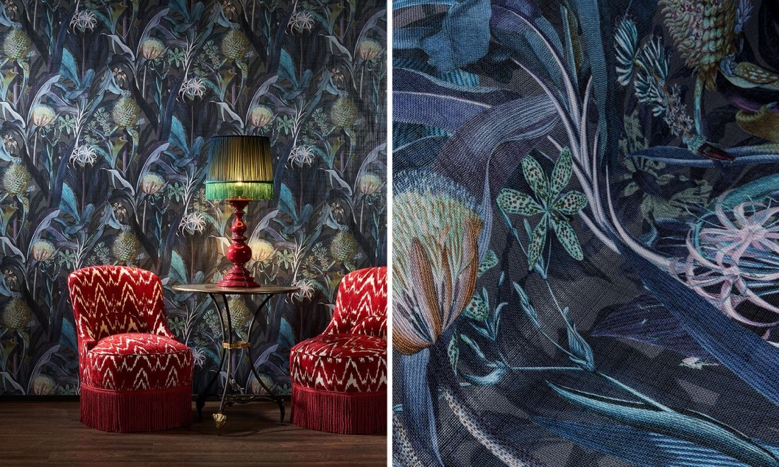 Blooming Pineapple behang van Arte. Dit behang zit vol met tropische bloemen en planten uit de Zuid-Afrikaanse suikerstruik. De luipaardbloemen en bloeiende ananassen nemen je mee op een exotische reis door Afrika. Gemaakt in een linnen effect.