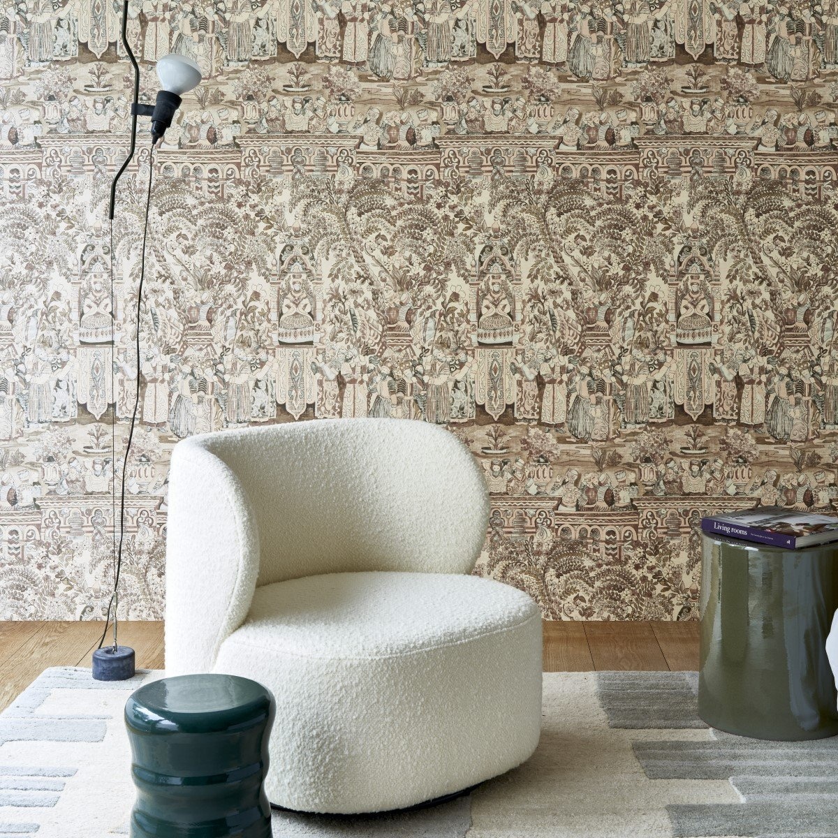 Emperador behang uit de Gitane collectie van ARTE is een eerbetoon aan de Ottomaanse kunst en cultuur. Het oosterse ontwerp is gebaseerd op een handgeschilderde scène op prachtige zijde die een levendig en ingewikkeld scenario uitbeeldt. Het textielbehang met vliesrug (per meter verkrijgbaar) is geweldig voor een enkele accentmuur en past perfect bij de modieuze etnische stijl.