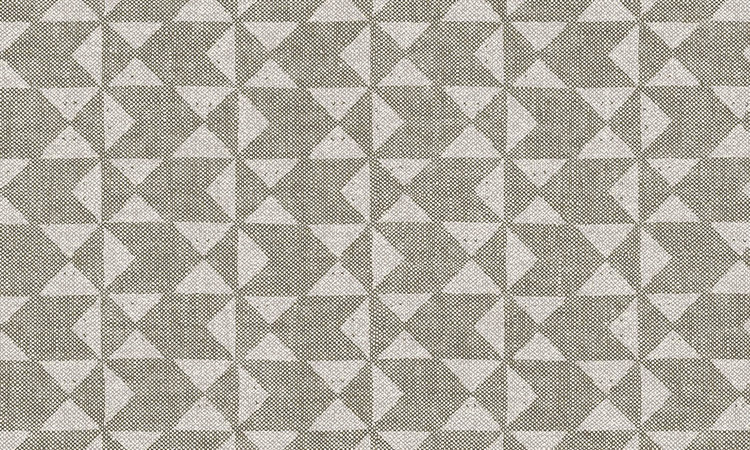 Rythmique behang speelt met grafische vormen die een excentriek patroon vormen. De linnenstructuur geeft de print zachte overgangen.