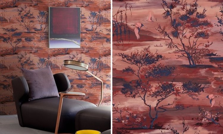 ARTE Sagimai behang, een toile-achtig motief met prachtige bloeiende bomen, gelaagde bergtoppen en kraanvogels op de vlucht. Met deze muurbekleding voorziet u uw muren van prachtige Japanse schilderkunst. Creëer een bijzondere sfeer en droom weg bij deze Japanse definitie van schoonheid. Het grasweefsel dat op dit behangpapier is geplakt geeft een voelbare structuur en benadrukt de Japanse uitstraling. Dit behang heeft een subtiele glans als het licht erop valt.