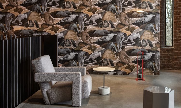 Saturnia behang is vernoemd naar het Toscaanse dorp Saturnia, dat al sinds de Romeinse tijd beroemd is om zijn warmwaterbronnen. Deze serene scène toont mensen die in de bronnen baden. De onderliggende fil-à-fil techniek met zilver- en goudfolie zorgt niet alleen voor reliëf, maar zorgt ook voor een unieke glans in het water. Het is een echte gespreksaanzet!