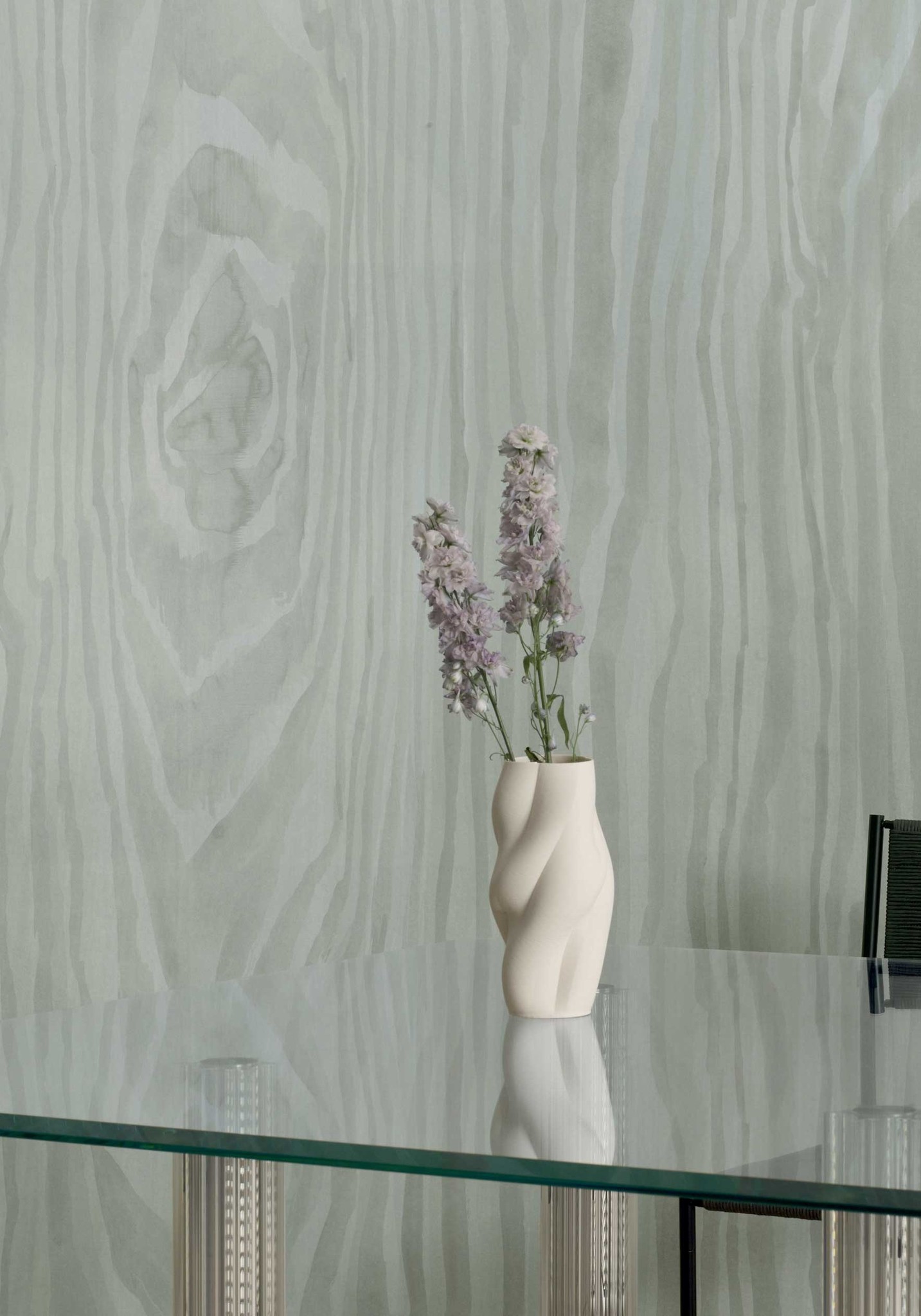 Redfield & Dattner vertrouwen de aquareltechniek toe met dit eerbetoon aan faux hout, een voorouderlijke knowhow van decoratief schilderen. Door de knopen en nerven op een sterk uitvergrote schaal in te zetten, dompelt de studio ons onder in een abstracte maar vertrouwde setting.