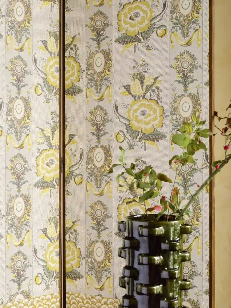 La Discrete is geïnspireerd op de gelijknamige bloem: de ranonkel. Deze muurbekleding van Braquenié, uit de Pierre Frey Braquenié Collection Anniversaire 1823, toont de bloemen samen met typerende tulpen, klassieke medaillons en sierlijke linten. Een tijdloos behang dat perfect is voor een luxe, chic en exclusief interieur.