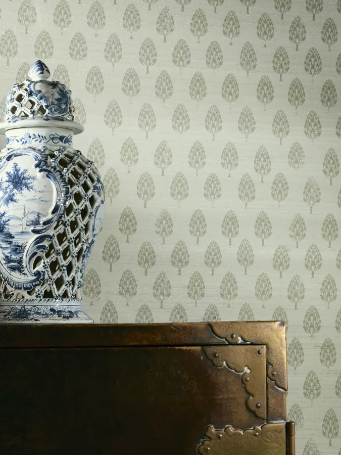 Villandry is geïnspireerd op de wijde dennenbossen van Frankrijk. Deze muurbekleding van Braquenié, uit de Pierre Frey Braquenié Collection Anniversaire 1823, toont de dennen op een structurele manier op een effen zijde achtergrond. Een tijdloos behang dat perfect is voor een luxe, chic en exclusief interieur.