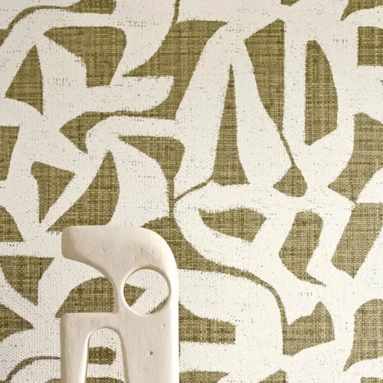 CANA dankt zijn naam aan canework, een traditionele vlechttechniek met rotan, riet of bamboe. Dit organische ontwerp, geschilderd op raffia-afgewerkt canework, is gereproduceerd op gestructureerd vinyl.