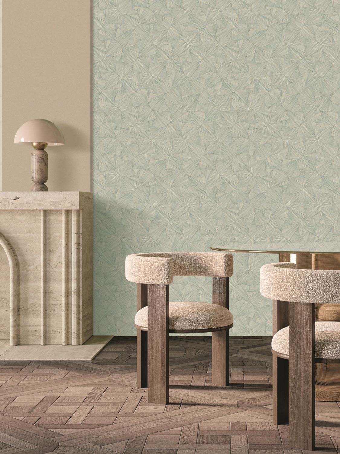 De collecte Nature Précieuse is gebaseerd op een innovatieve techniek waarbij een metallic folie op het reliëf van de textuur wordt aangebracht. In een perfecte symbiose smelten de plantafdruk en het goud in elkaar en bieden ze je interieur het meest kostbare juwelenkistje.