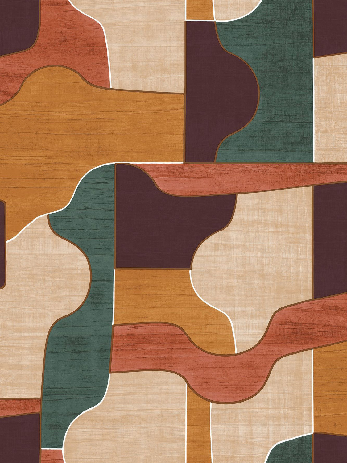 MODERNISMO is een geometrisch ontwerp met houtinleg, geïnspireerd door Braziliaans modernisme. Met vloeiende lijnen en natuurlijke materialen creëert het een opvallend effect.