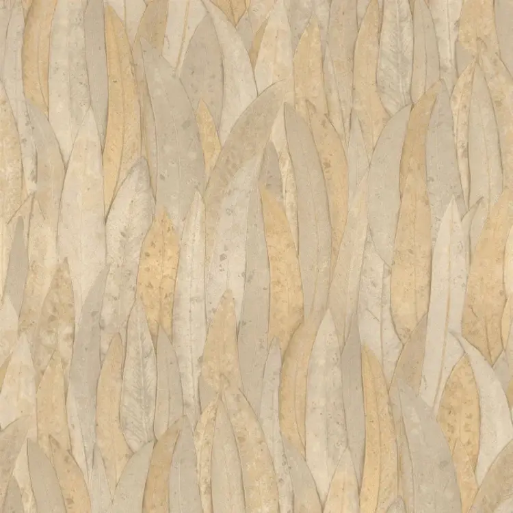 De collecte Nature Précieuse is gebaseerd op een innovatieve techniek waarbij een metallic folie op het reliëf van de textuur wordt aangebracht. In een perfecte symbiose smelten de plantafdruk en het goud in elkaar en bieden ze je interieur het meest kostbare juwelenkistje.