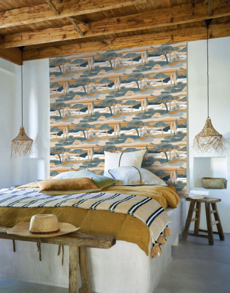 Cap Ferret is een behang geïnspireerd op het iconische landschap Cap Ferret en toont oceaankusten en duinbossen in zachte aquarellen. Voor de muurbekleding van Casamance uit de collectie L'Île Aux Oiseaux is de diepdruktechniek gebruikt om de vlakken van matte tinten te creëren die de kleuren van Cap Ferret hun finesse geven. Een sfeervol behang dat perfect is voor een dromerig en natuurlijk interieur.