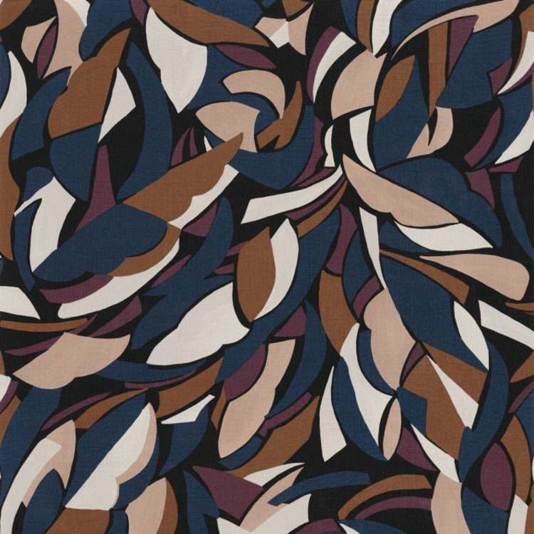 Collage behang. De plannen bespreken een ding van schoonheid gemaakt uit verschillende collecties. De kleurvlakken lijken lukraak te zijn geplaatst, wat een roekeloosheid toevoegt aan de organisatie. Ze hebben een handgetekende kwaliteit en de penseelstreken op het materiaal. Gemaakt met behulp van rotogravure op twee sporadische korrels, geeft het drukprocédé het plan en de mengeling van tonen hun kunstzinnigheid.