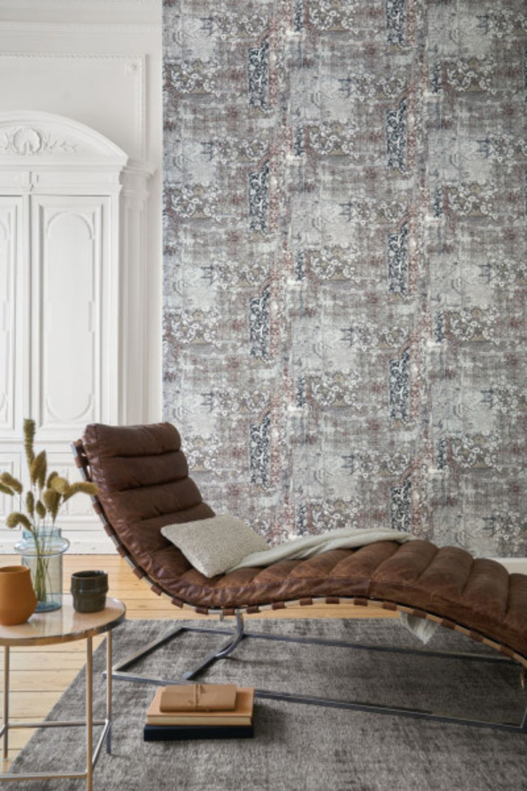 Galeecha behang. Een structuurbehang met een bloemig linnen stofeffect, past goed bij andere Casamance-dessins, maar is even effectief als mooi, op zichzelf staand behang.