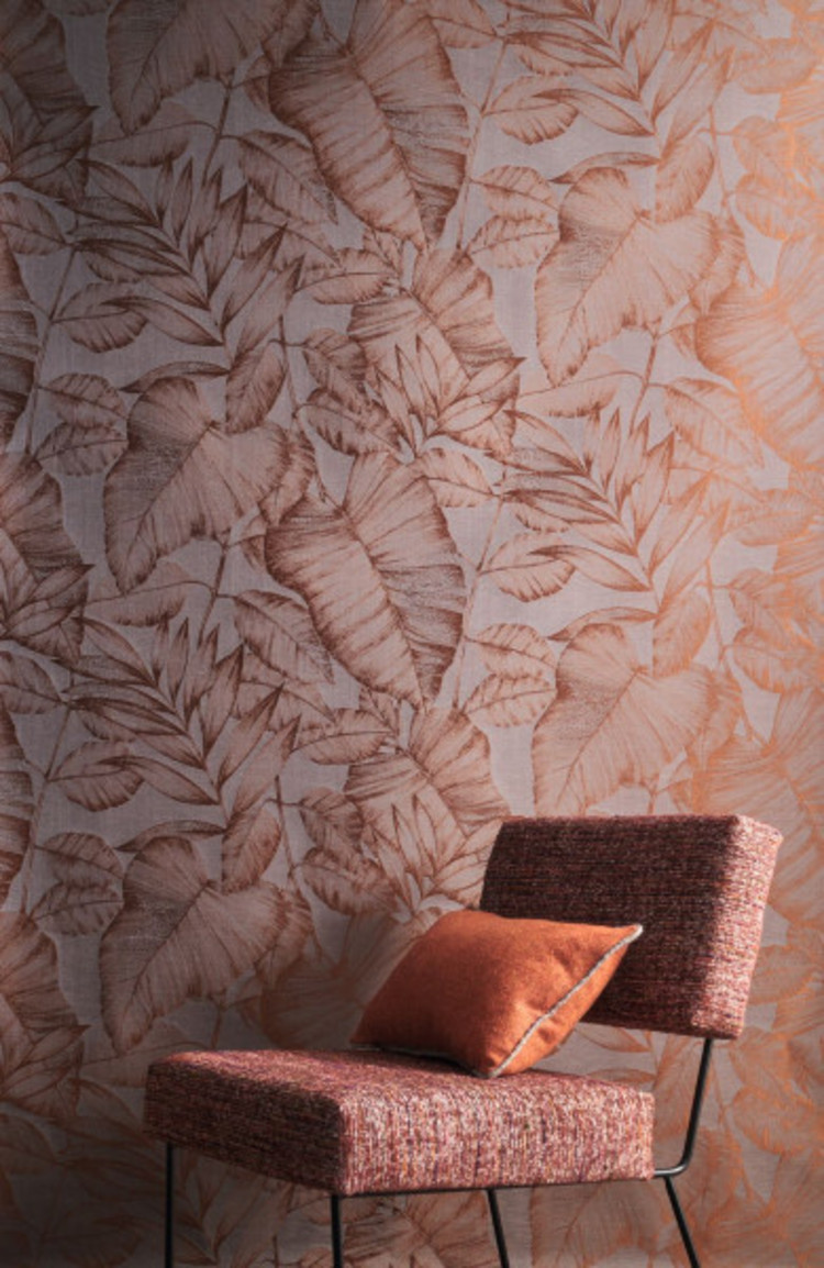 HOJA, de wandbekledingspartner van de stof Canna, doet denken aan overvloedige vormen van weelderige vegetatie. Deze vegetale jacquard weerspiegelt de rijkdom van de natuur in zijn satijnachtige accenten.