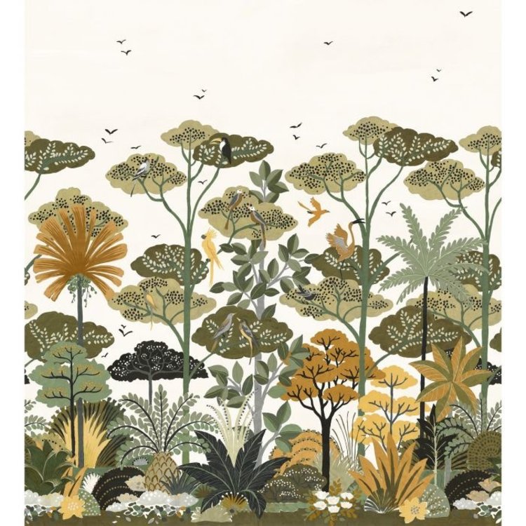 Kandy is een behang dat geïnspireerd is op een wandeling door de koninklijke tuinen van Sri Lanka. Deze muurbekleding van Casamance uit de Golfe du Bengale collectie is een spectaculair paneelbehang: een artistiek sfeerbeeld vol kleurrijke junglebloemen, tropische vogels en de hoogste palmbomen. Een botanisch behang dat perfect is voor een trendy (wabisabi), sfeervol en sprekend interieur.