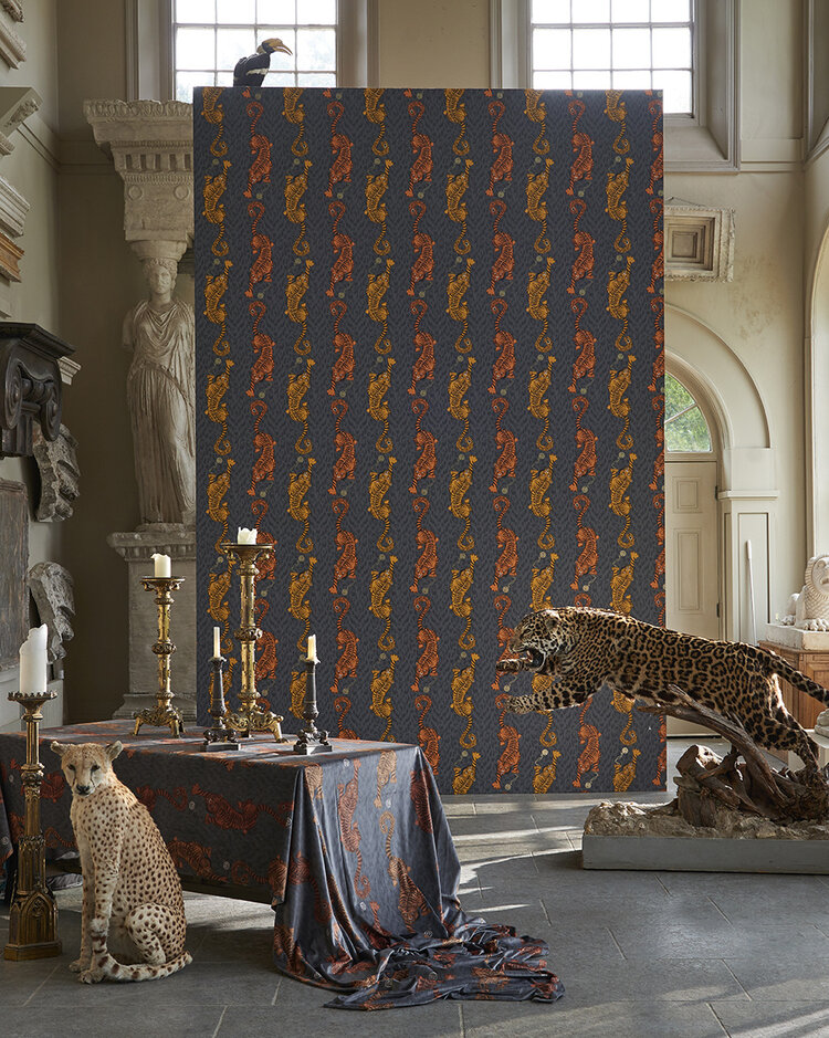 Clarke & Clarke staat bekend om ​​de klassieke look met zijn verfijnde stijl in elke print. De collectie 'Animalia Wallpaper' is een spannende samenwerking met kunstenaar Emma J. Shipley. De ontwerpen bevatten tropische papegaaien, slingerende maki´s, woeste tijgers en met de handgetekende giraffen. Dit behang is perfect voor een exotisch en magisch interieur.
