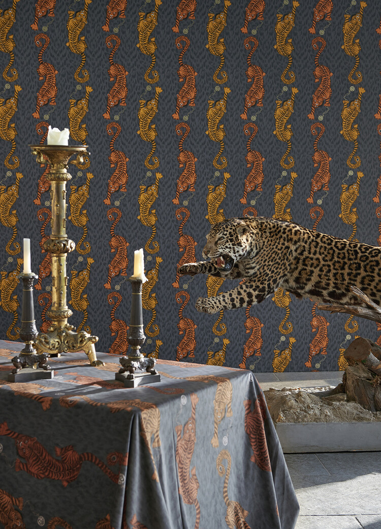 Clarke & Clarke staat bekend om de klassieke look met zijn verfijnde stijl in elke print. De collectie 'Animalia Wallpaper' is een spannende samenwerking met kunstenaar Emma J. Shipley. De ontwerpen bevatten tropische papegaaien, slingerende maki´s, woeste tijgers en met de handgetekende giraffen. Dit behang is perfect voor een exotisch en magisch interieur.