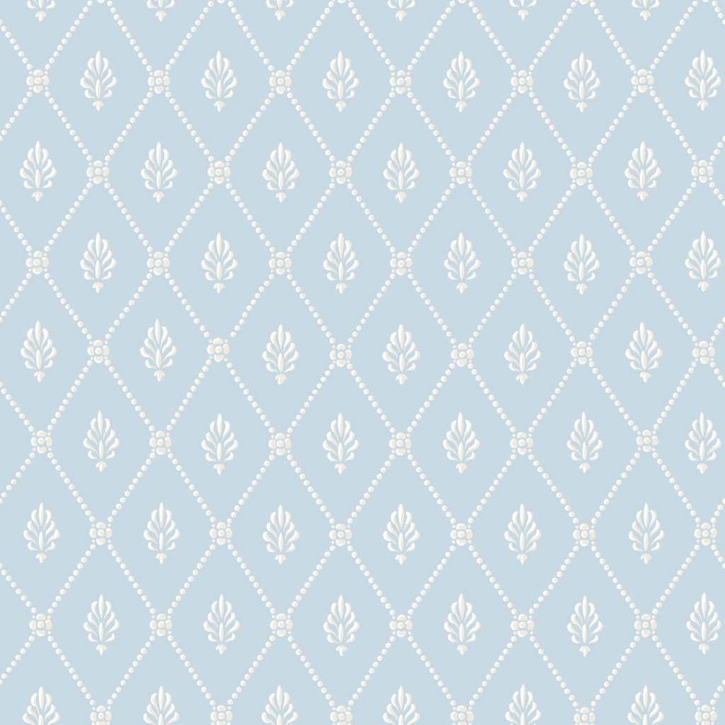 Het Alma-behang ontleent zijn titel aan de populaire Victoriaanse meisjesnaam en heeft een kleinschalig diamanten latwerk met daarin een eenvoudig takje bladmotief. Deze slimme kleine print op basis van poederblauw, grijs, zand en ecru geeft een modern gevoel aan een traditioneel motief.