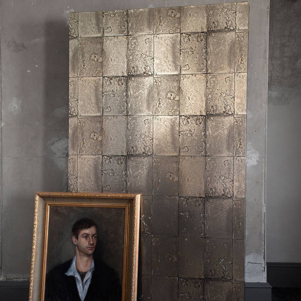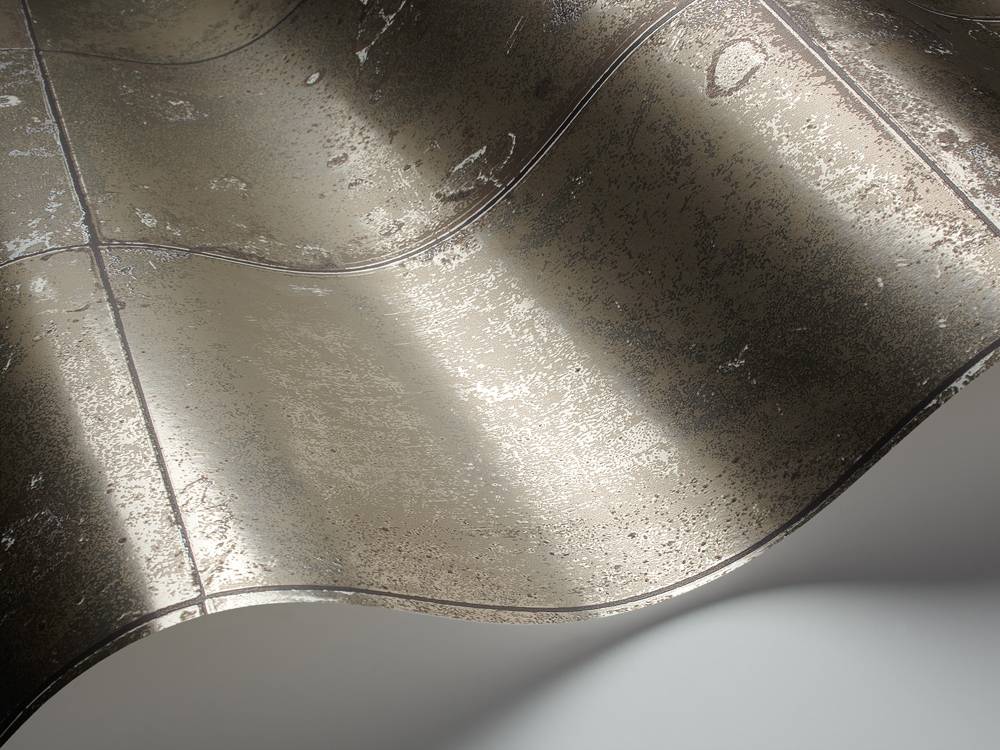Vliesbehang uit de collectie Foundation van Cole & Son. Patroon Antique Mirror (92/2008) met geometrisch motief in kleur metallic zilver en zwart.