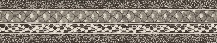 Deze mooie decoratieve rand is afgeleid van de decoratieve details op een keramische vaas en fungeert als een decoratieve rand voor veel van de papiersoorten in deze collectie. Ontworpen om zowel verticaal als horizontaal te worden opgehangen, wordt het aangeboden in drie kleuren: zwart en wit, zacht olijfgroen en een dramatisch gebrande sinaasappel en houtskool. Afbeelding van het interieur is voorzien van 109/5026 en 109/10050