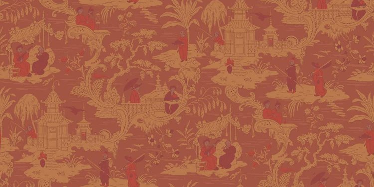 Een vroeg Cole & Son-behangontwerp heeft een frisse kijk gekregen op het interieur van vandaag, terwijl de oosterse uitstraling van het verleden behouden blijft. Dit oriëntalistische ontwerp, een populaire stijl in de Victoriaanse tijd, heeft pastorale vignetten van het leven in het Verre Oosten in houtskooltinten, Chinees rood, ivoor en salonblauw.