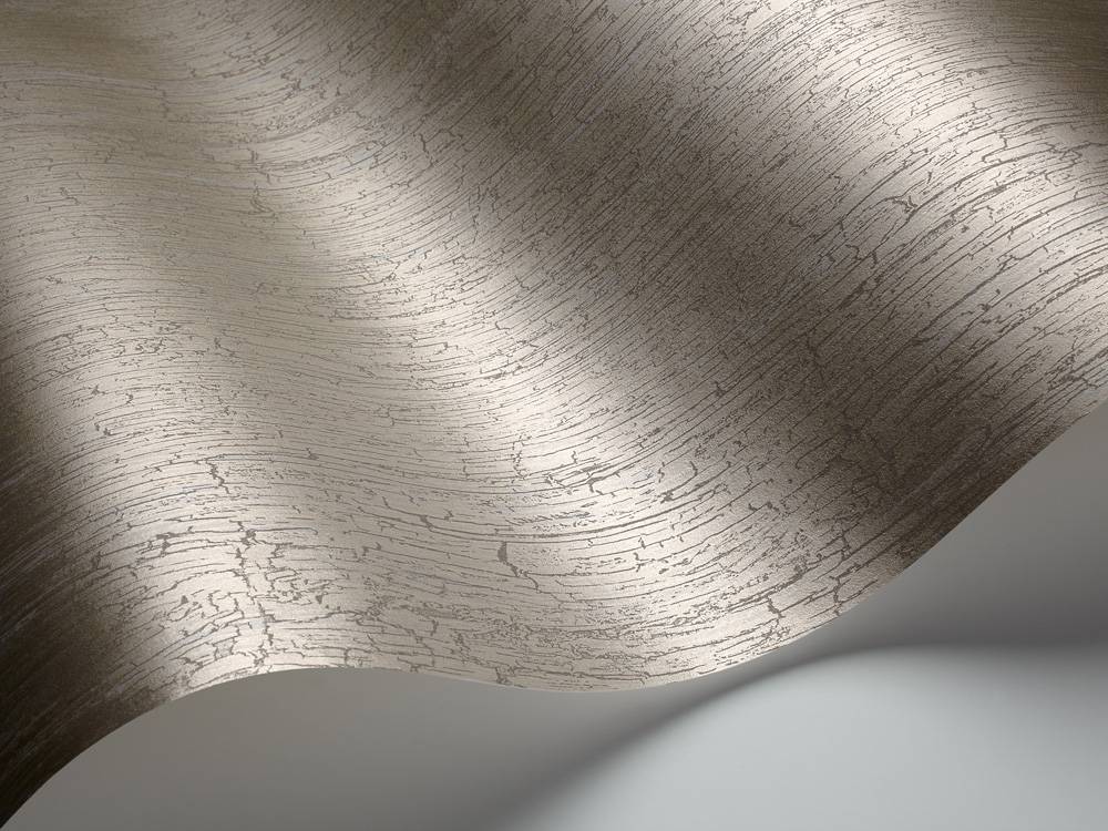 Vliesbehang uit de collectie Foundation van Cole & Son. Patroon Crackle (92/1005) met hout motief in kleur metallic zilver en goud.