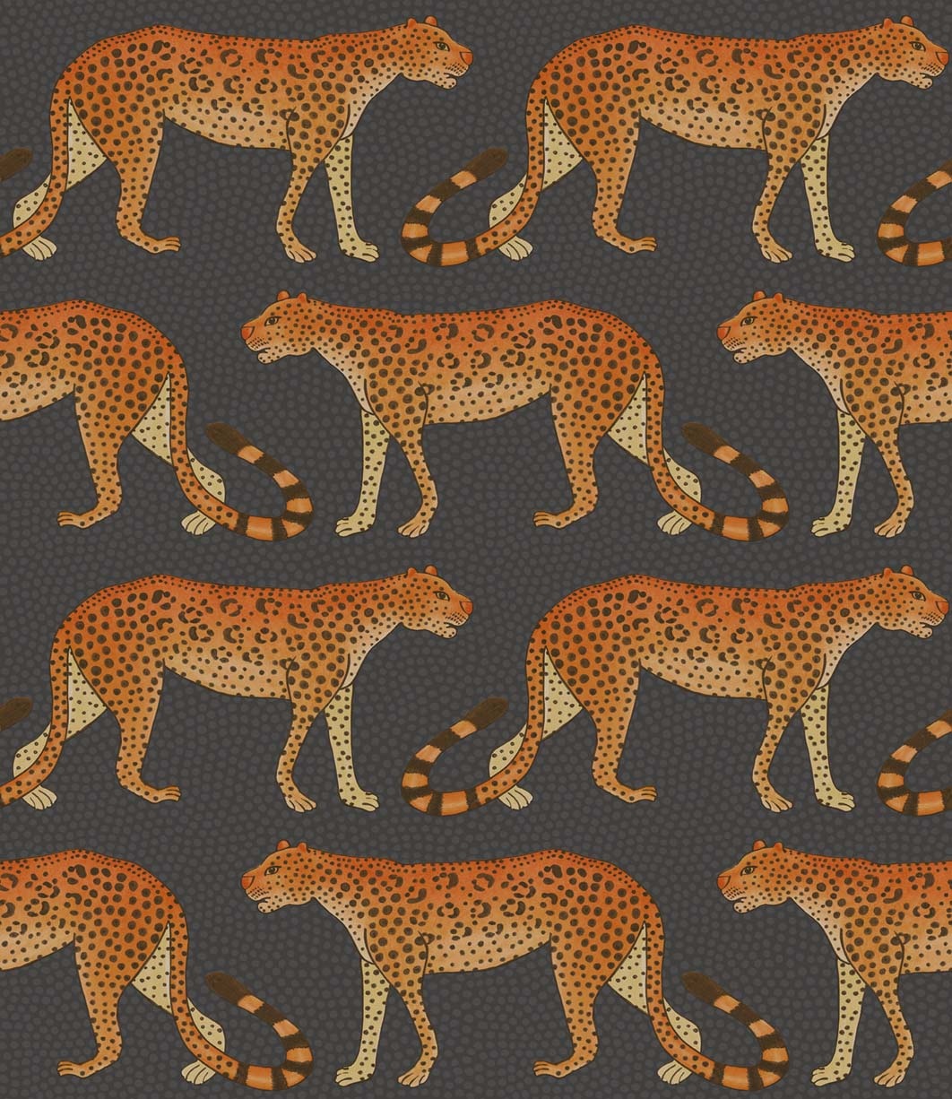 Luipaarden marcheren links en rechts over dit behang, waarbij hun staarten patronen en ritmes vormen die geassocieerd worden met Zulu-dans en -muziek. Oorspronkelijk geschilderd door Punch Shabalala, een van Ardmore's oudste en meest gewaardeerde kunstenaars, is Leopard Walk een eenvoudig maar opvallend ontwerp dat wordt aangeboden in vijf kleuren, waaronder zacht grijs en taupe, opvallend zwart en wit en een rijke en humeurige houtskool met gebrand oranje, bijna vuur verlichte luipaarden.