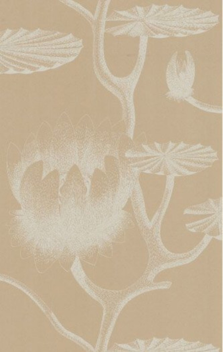 Vliesbehang uit de collectie New Contemporary II van Cole & Son. Patroon Lily (693113) met bloem in kleur bruin en wit.