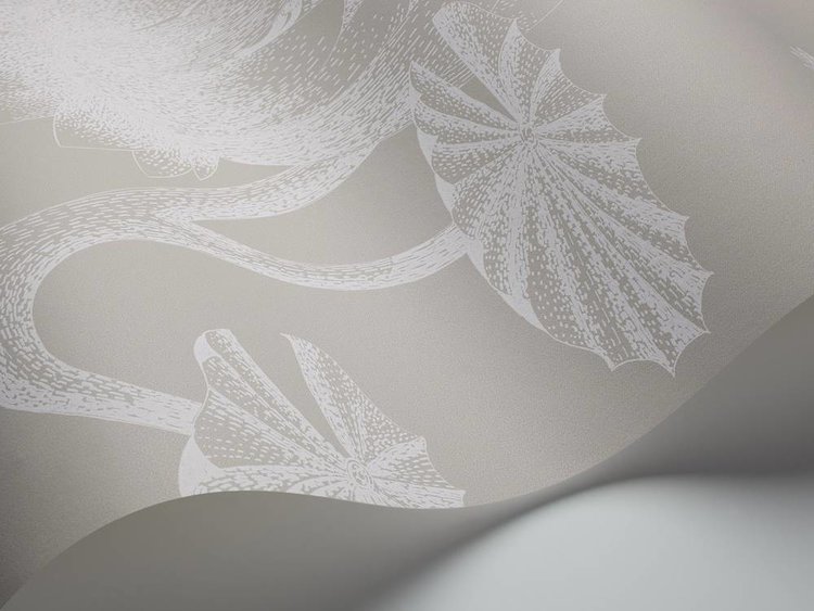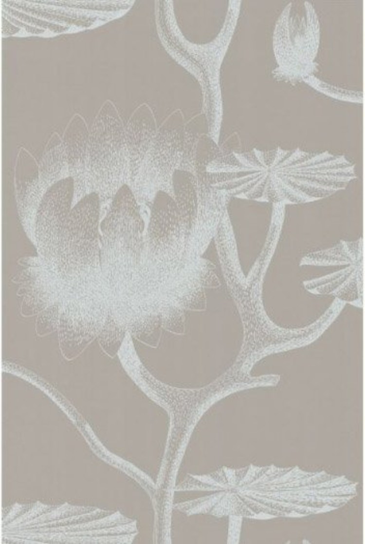 Vliesbehang uit de collectie New Contemporary II van Cole & Son. Patroon Lily (693110) met bloem in kleur grijs en wit.