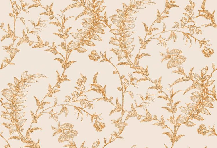 Vliesbehang uit de collectie Archive Traditional van Cole And Son. Patroon Ludlow (881003) met blad in kleur beige en goud.