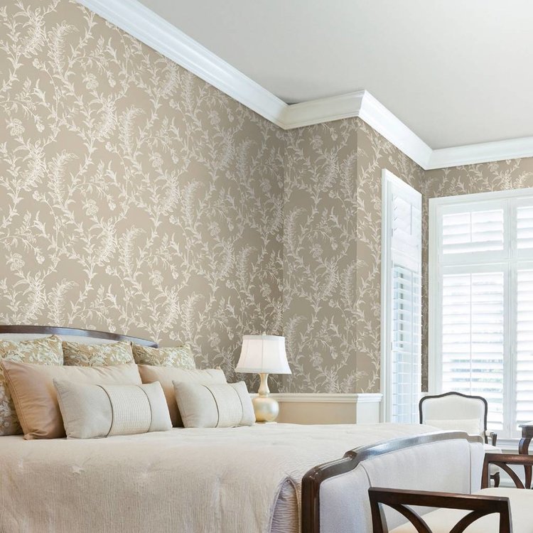 Vliesbehang uit de collectie Archive Traditional van Cole And Son. Patroon Ludlow (881004) met blad in kleur beige en zilver.