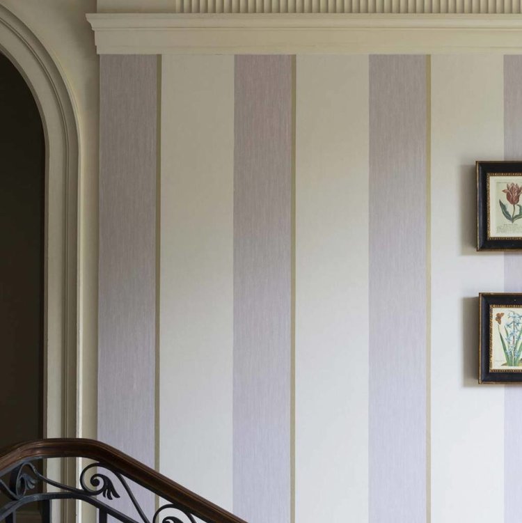 Cole & Son Marly is een breed streep behang, opgezet met een kwast behang en voorzien van een subtiel gouden randje.