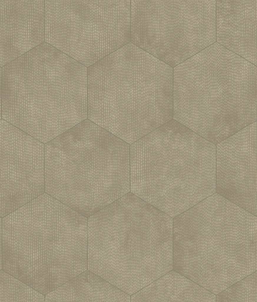 Geology meets geometry in this intricately enigmatic wallpaper of soft shimmering, burnished metallic. Set in a loose hand-drawn hexagonal tile arrangement, these smoky mineral colourings include dusty charcoal black, pearl, pewter and oyster, perfect for elegant daylight or low-lit night light.