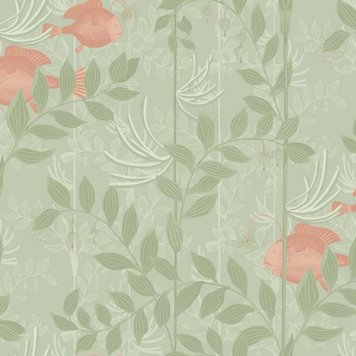 This charming design stars a pair of enigmatic anglerfish shimmering in a dreamlike landscape of underwater plants and tendrils. Presented in four colourings of soft olive and pink, subtle neutral and gilver, striking green and orange and deep indigo and yellow, Nautilus, like its namesake reveals a magical underwater world within a world.