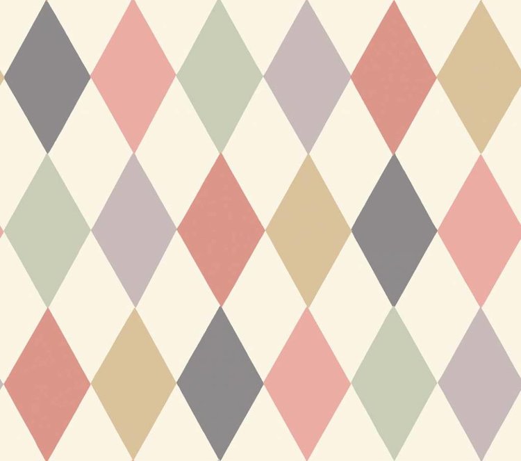 One of the signature designs within the collection, Punchinello, named after and inspired by the rascally character from the Commedia dell‘arte, is a striking harlequin paper printed in six contrasting colourings of chalky pastels, subtle gold, moody charcoal, soft reds and an eye catching red and black.Interior image features: Multi-coloured 103/2006