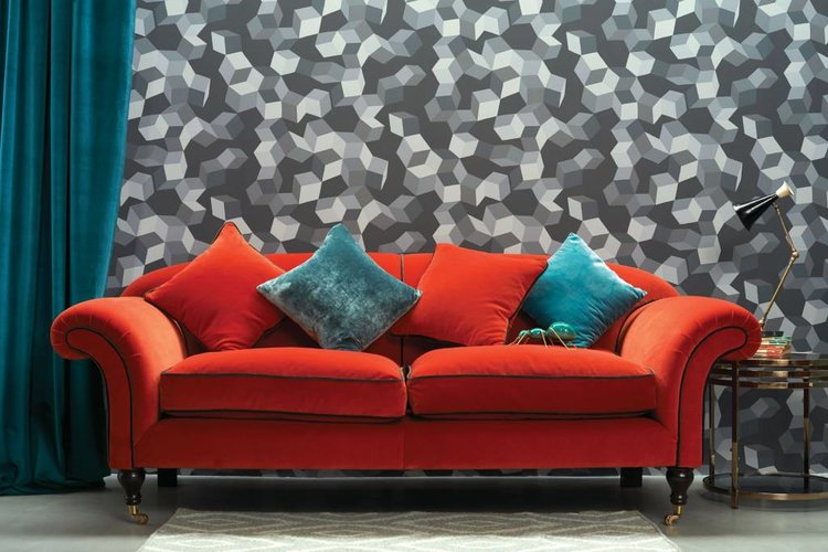 Presented in six stunning colourways, this screen printed wallpaper featuring a dizzying cascade of tumbling cubes is a real statement piece for the interior. The six colourings include the more serious tones of black, white and grey, alongside a softer pastel palette, and a show-stopping display of acid yellow and limes on charcoal.