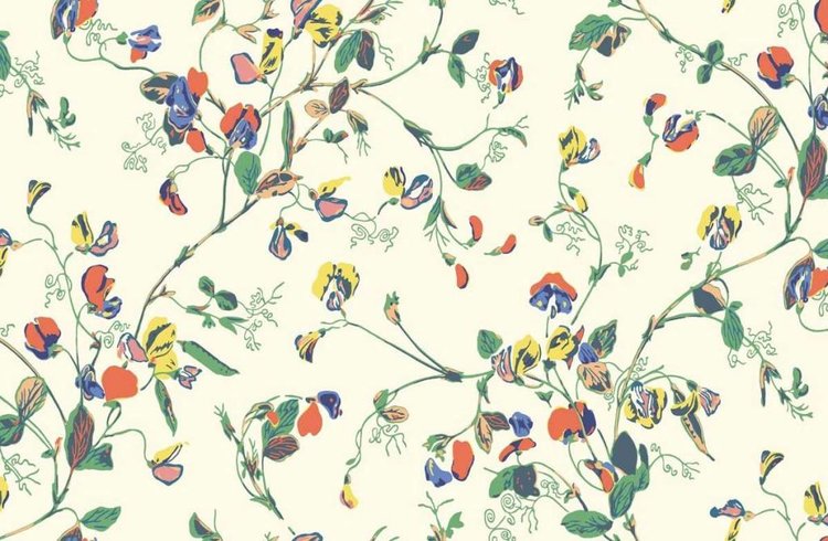 Sweet Pea, gevierd om zijn gracieuze flora met stroken, is een blijvend Cole & Son-motief. Met zijn heerlijk geurende, weelderige klimplanten is de Lathyrus odoratus een favoriet in tuinen op de Britse eilanden en daarbuiten. Bijgewerkt in nieuwe, eigentijdse paletten van Cerise & Magenta op Viridian en Ochre & Rose op perkament, evenals traditionele cottage tuintinten van Autumn Multi, Blush & Olive, en Mulberry & Sage on Cream, en Cerulean Sky & Sage on White. erfgoedontwerp is aan het oppervlak bedrukt om de dikke, voelbare afdrukmarkeringen van elk bloemblad te behouden.