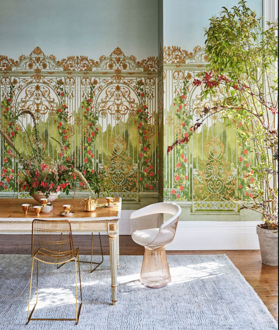 Jean Tijou, de Franse meestersmid en ontwerper, kreeg van Willem III de opdracht om een tiental uitgebreide ijzeren schermen te maken voor de tuinen van Hampton Court Palace. Deze flamboyante vergulde schermen met scrollende acanthusbladeren werden een prachtige achtergrond voor de grootsheid en weelde van de Privy Garden, de privétuin aan de rivier van de koning, waar ze nog steeds staan. De Tijou Gate, zorgvuldig met de hand getekend en geschilderd, is een prachtig versierd paneelontwerp van smeedwerk en bloemen in bloei.