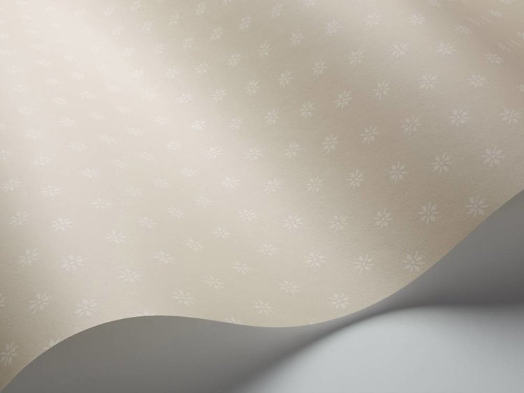 A simple small-scale star motif wallpaper taken from the Cole & Son archive, set on subtle pastel tones of duck egg, plaster pink, straw and a range of neutrals.