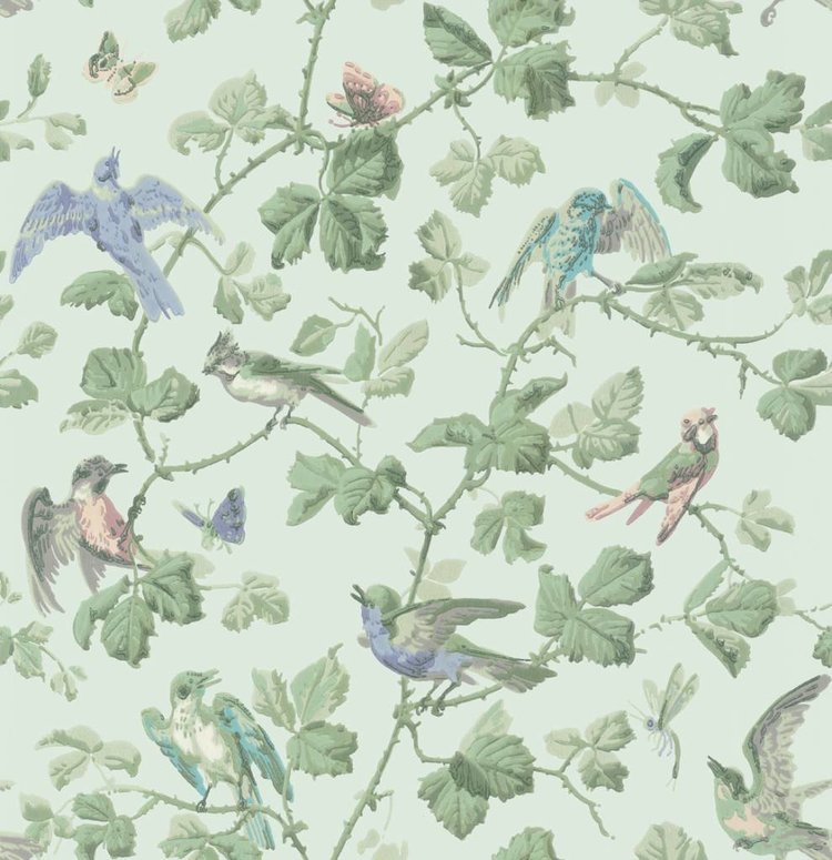 The historic wallpaper design Winter Birds was discovered hiding in the bottom of an archive drawer. This wonderful old print reveals garden birds perching amongst thorny briars and rose bushes. Coloured subtly in earthy tones of greys, olives, blues, and ochre.