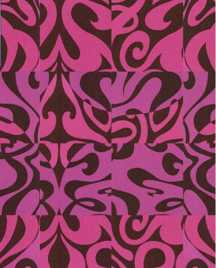 Vliesbehang uit de collectie New Contemporary II van Cole & Son. Patroon Woodstock (697125) abstract in kleur zwart, roze en paars.