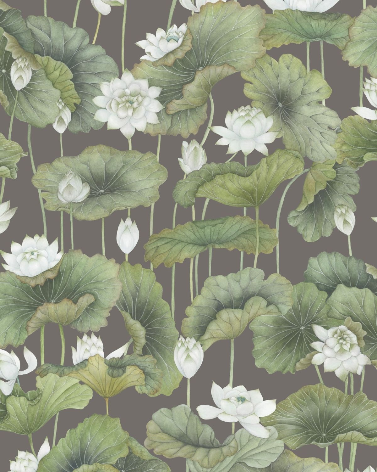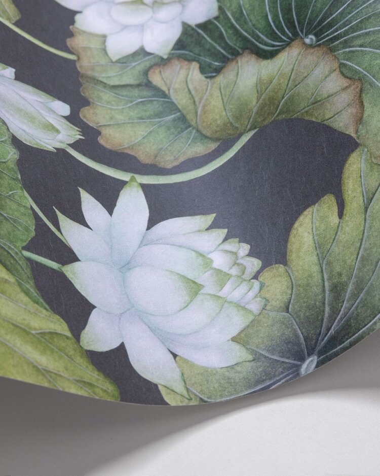 Cole & Son behang Lily Lotus White on Charcoal - 126/9033
