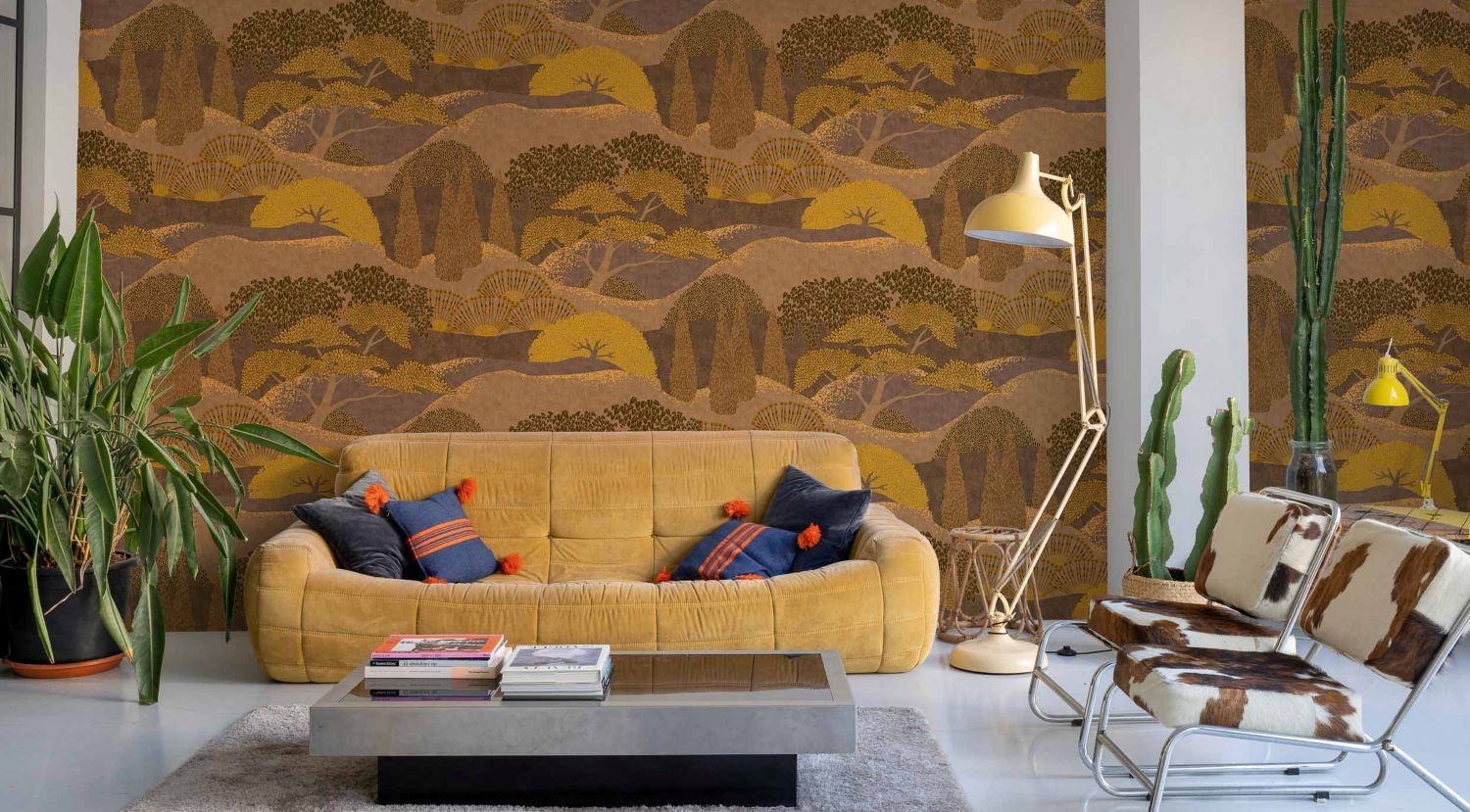 Het bijzondere Spaanse Coordonné behang is industrieel en vintage en heeft een eigen karakter.