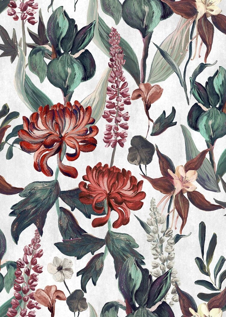 Coordonné behang Jardín Rojo Cisne - A00606