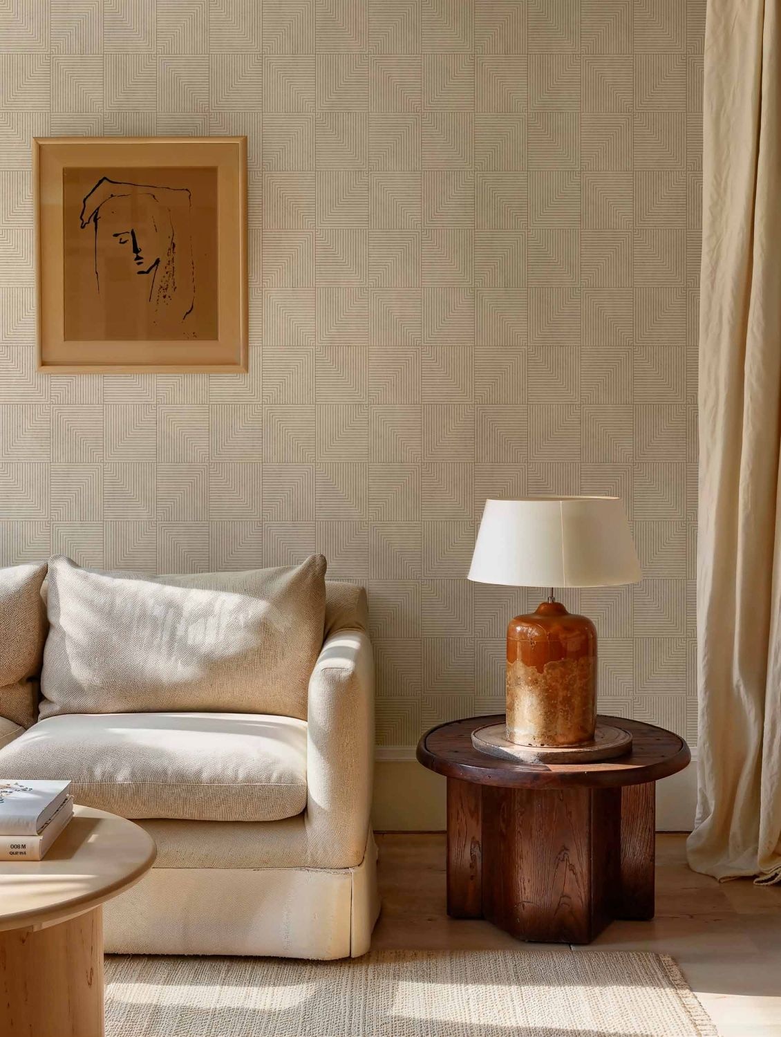 De collectie 'Lattice' van Coordonné bestaat uit dessins met oneindige lijnen die met elkaar verbonden zijn en samen een mooi patroon vormen, net als een bouwtekening met rechte vakken.