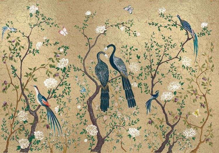 Het Coordonné Edo Gold chinoiserie behang is een botanisch behang met prachtige bloemen en takken waar sierlijke vogels hun weg in vinden. Door de mooie volle kleuren en de sierlijke vormgeving straalt dit paneel stijl en luxe uit.