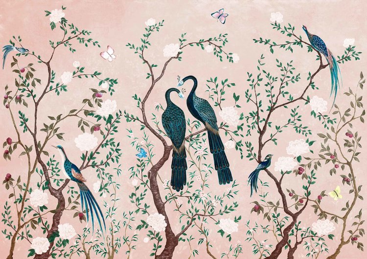 Het Coordonné Edo Gold chinoiserie behang is een botanisch behang met prachtige bloemen en takken waar sierlijke vogels hun weg in vinden. Door de mooie volle kleuren en de sierlijke vormgeving straalt dit paneel stijl en luxe uit.