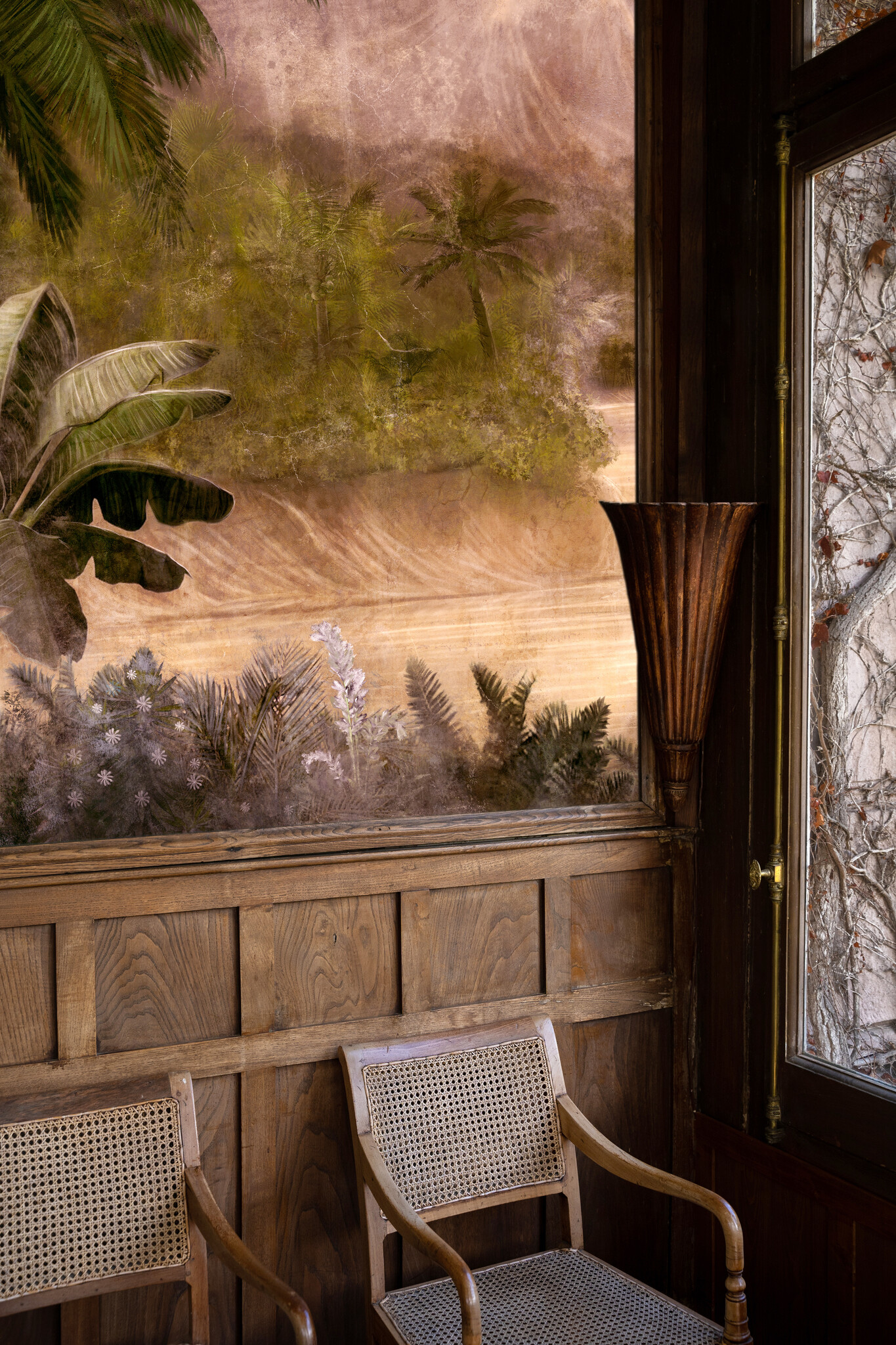 Het bijzondere Spaanse Coordonné behang is industrieel en vintage en heeft een eigen karakter.